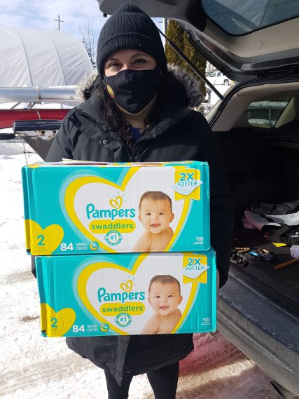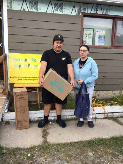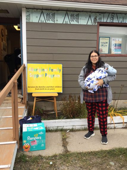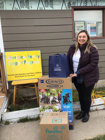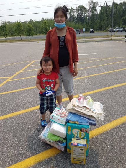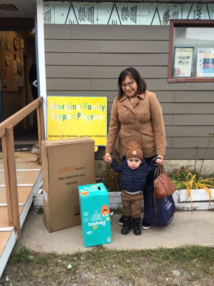 True North Aid and the Indigenous Family Support Program in Sioux Lookout have collaborated to establish “Maamiikiwe” [maa-mee-ki-way]. Translated from Ojibway, Maamiikiwe means “gives gifts away.” This partnership aims to connect essential maternal, infant and children’s items with mothers and families in need. Donated items like diapers, wipes, bottles, clothing,blankets, along with hand-knit hats and sweaters, are made accessible for families through the Aboriginal Family Support program, Healthy Babies, Healthy Children and the Pre and Postnatal Support Program. Many of the donations provided to the Maamikiwe Program were purchased through Amazon’s Delivering Smiles Program, Graco, Nuk, and other groups across Ontario.