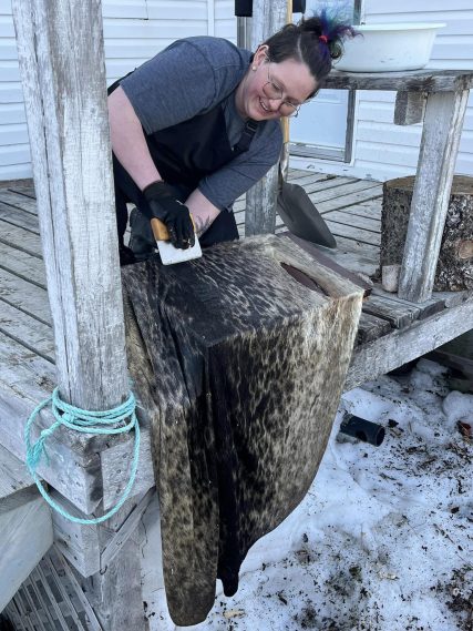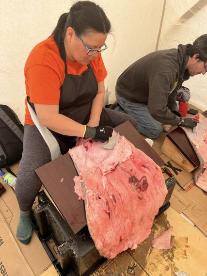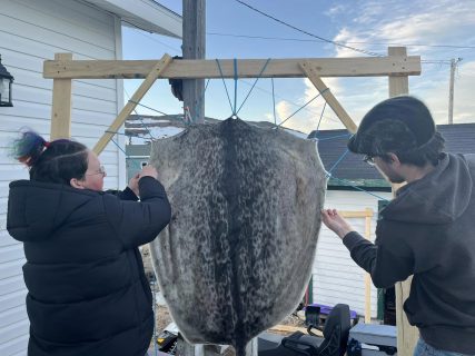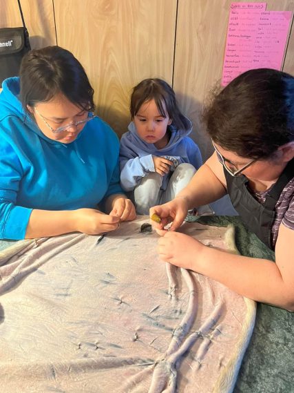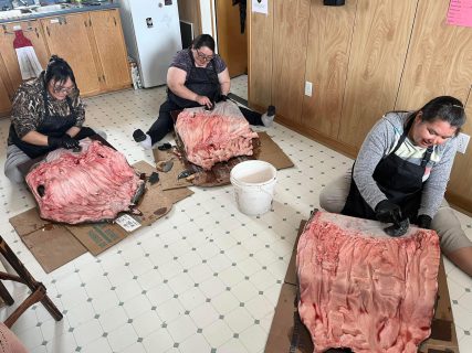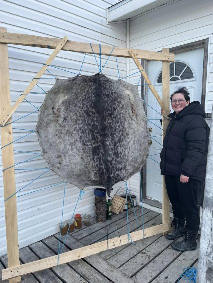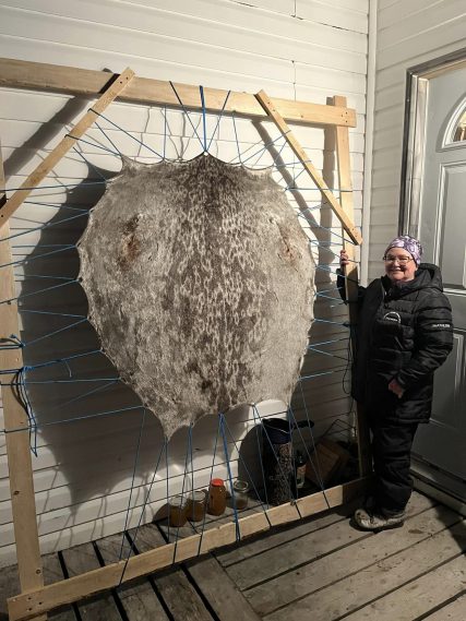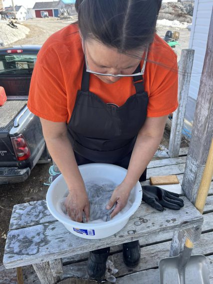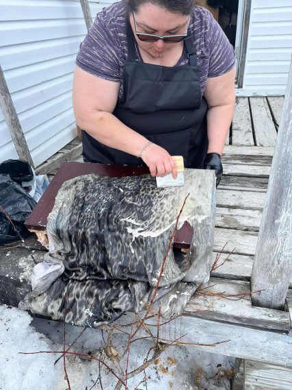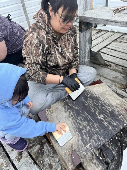 From Veronica: “Few community members know how to clean sealskins anymore, so seeing that folks were interested in practicing the skill was very exciting.”