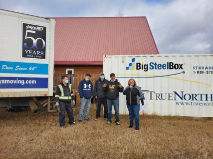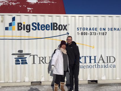 In 2017, True North Aid purchased a 40-foot shipping container for the Onion Lake First Nation community in Northern Saskatchewan. The shipment was filled with food, warm clothing, baby items, and other goods to be distributed in Onion Lake. It continues to be used to this day to store flour and other goods for the food program there.